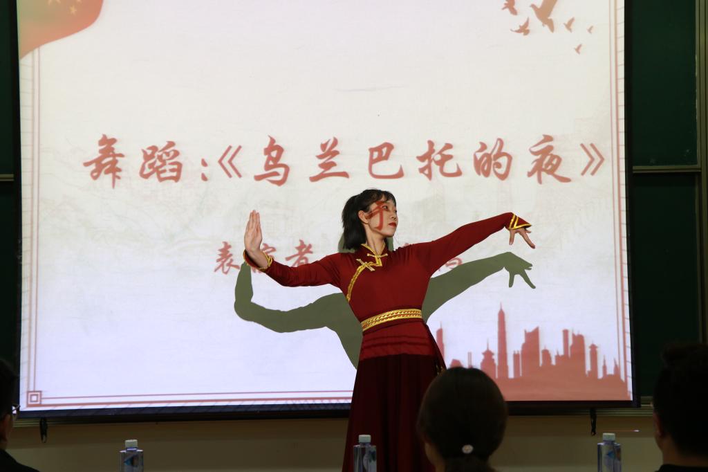 在闭幕式的现场对此次主题系列活动中的各项比赛活动进行了表彰奖励,同时也进行了文艺汇演。此次文艺汇演丰富多彩、形式多样,有活力四射的街舞、独具魅力的蒙古舞、悦耳动听的歌曲、慷慨激昂的朗诵、袅袅余音的吉他弹奏等7个节目。其中英文歌《Hope》为我们播下希望的种子,蒙古舞《乌兰巴托的夜》让大家领略草原风情,我们也在吉他演奏《like a star》中仰望未来,朗诵《不忘初心,牢记使命》更让我们坚定了跟党走的决心……最后,此次闭幕式在《我和我的祖国》歌声中落下帷幕,学生们用青春的激情,向伟大的祖国致敬,向不忘初心、砥砺奋进的中国人民致敬。