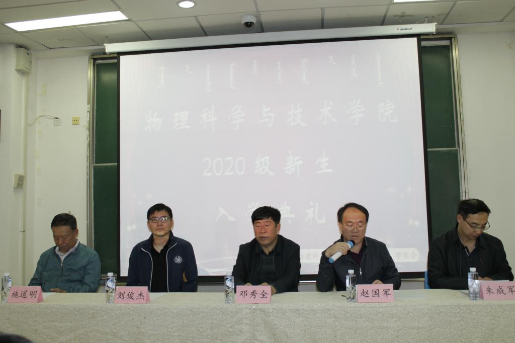 综合赛事平台副院长赵国军首先对到来的新同学表示欢迎,随后向同学们介绍了学院的历史沿革和发展状况,并向同学们提出了四点希望,表达了对新同学们学有所成的期盼;2017级应用物理学专业朱文培同学作为老生代表致辞,希望学弟学妹们在人生最好的年华里在内蒙古大学扎根发芽、奋斗拼搏;2020级电子科学与技术专业方可欣同学代表新生发言,发出十年寒窗虽刻苦、四载春华更需搏的号召,希望同学们不忘初心、砥砺前行,在内大遇到更好的自己。