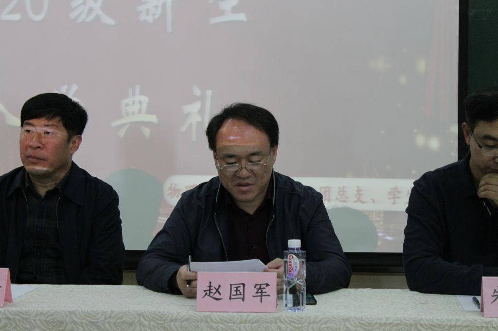 | 物理科学与技术学院副院长赵国军出席典礼并讲话 |