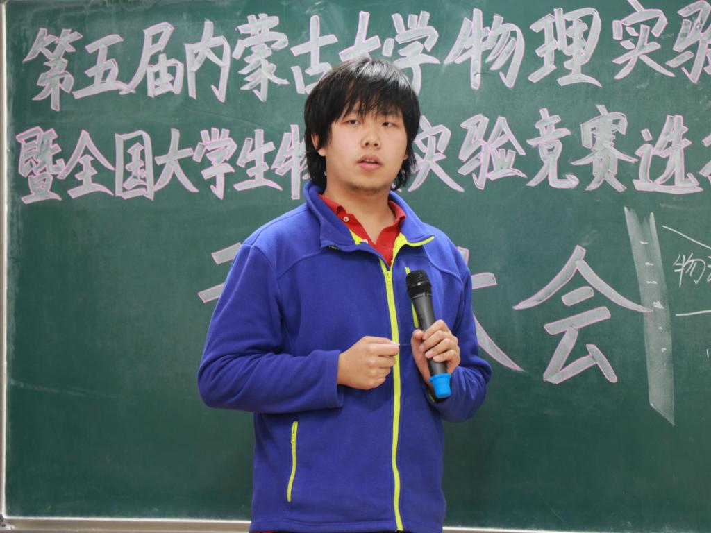 2020年10月26日19:00,第五届内蒙古大学物理实验竞赛暨全国大学生物理实验竞赛选拔赛动员大会在北校区卓越楼0501室成功举办。莅临本次大会的老师是:综合赛事平台物理实验教学示范中心主任樊国梁教授。同时,参加此次会议的还有在历届实验竞赛中取得过优异成绩的同学们,他们是: 2017级应用物理学专业朱文培同学、2017级数理学基地专业(物理方向)孟亚宁同学和2018级数理学基地专业(物理方向)张子雍同学。