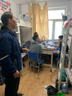 学院辅导员则对全院宿舍进行摸排,排查有无私自调换宿舍、不在宿舍居住等情况,宿舍是否存在管制刀具、大功率电器等危险物品,对宿舍卫生进行评分并提出整改要求等;同时,关心和了解同学们的学习生活情况。