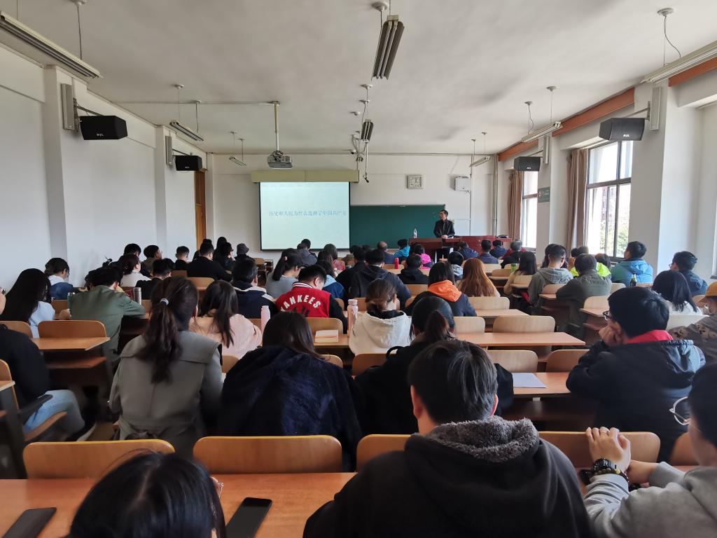 中国特色社会主义为什么"好",马思主义为什么"行",中国共产党为什么"能"。为梳理脉络,指明重点,促进提升,我院邀请内蒙古自治区优秀思政教师、内蒙古党史学会理事、马克思主义学院李治国副教授做题为《历史和人民为什么选择了中国共产党》的专题讲座。