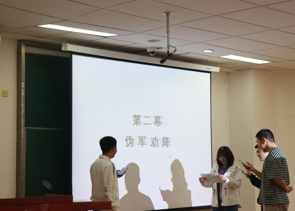 随后,张继彬、王佳慧、秦伟斌、郭齐泽、常振育等同学以《战火中的大学生》为题,以话剧的形式,展现了战争年代中国大学生的精神风貌。