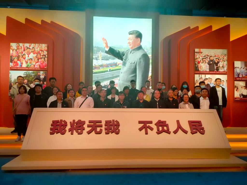 在到达内蒙古展览馆大厅后,邓秀全书记首先带领全体教工党员重温了入党誓词,然后在讲解员的引导下,进入百年党史回顾展厅,完成了对新民主主义、社会主义革命和建设、改革开放、中国特色社会主义进入新时代四个时期党史内容的学习。展览全面回顾和总结了从1921年到2021年,中国共产党团结带领中国人民铸就百年辉煌的壮阔历程,生动展示了各时期党的重大历史事件的发生、发展和深远影响。