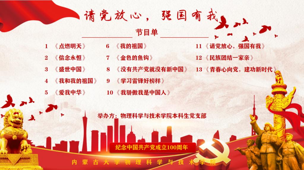 合唱:没有共产党就没有新中国 展示人:2020级物理学类专业同学 |