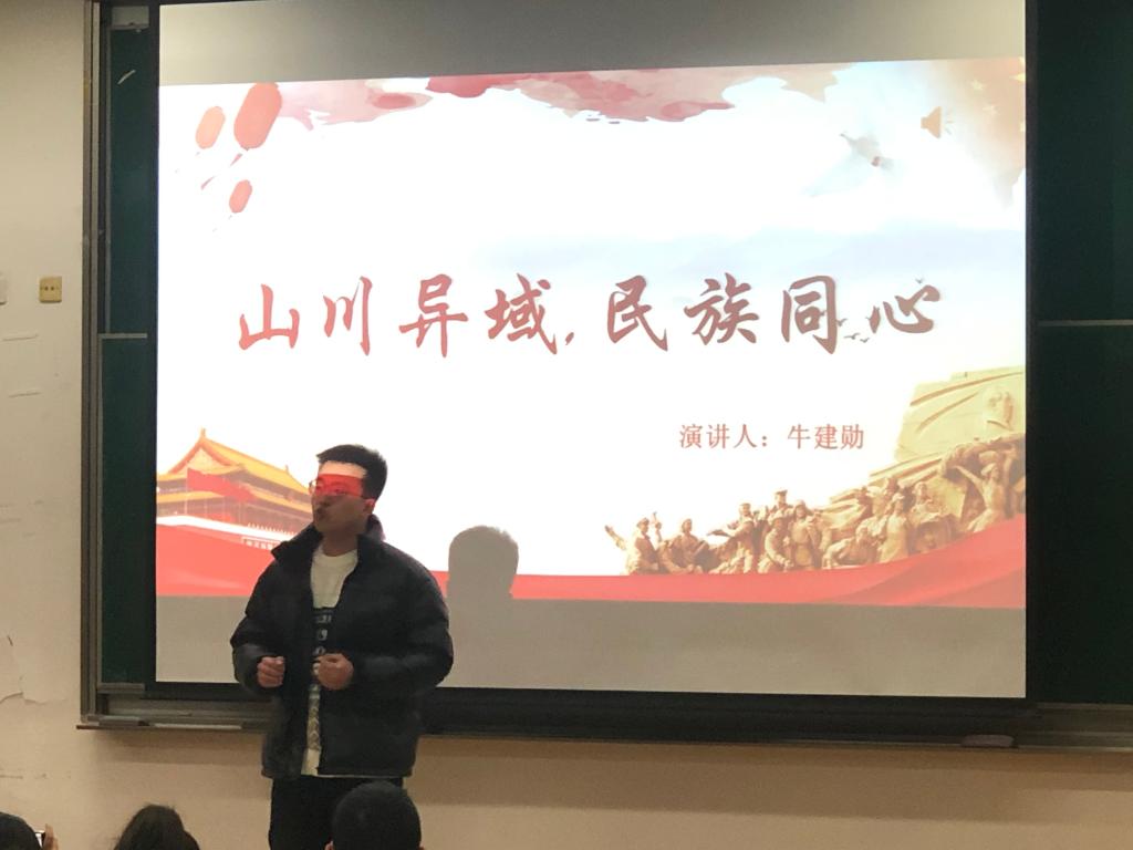 牛建勋演讲《山川异域,民族同心》。单丝不成线,独木难成林。我们虽民族不同,但我们都是华夏儿女。我们虽习惯有异,但我们心却紧紧相依。